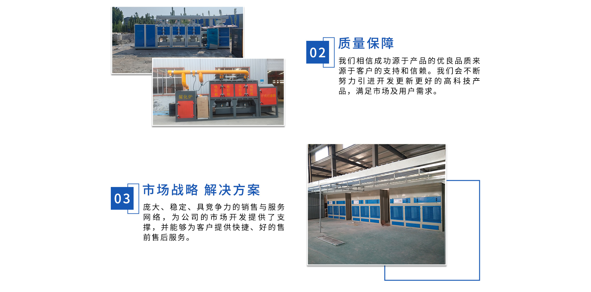 公司自成立以來,始終專注于工業(yè)廢氣、污水、粉塵等環(huán)境污染的治理,先后研發(fā)出催化燃燒設備、光氧催化廢氣處理設備、低溫等離子廢氣處理設備、粉塵處理-體化設備等一系列環(huán)保設備,產品先后通過ISO901質量管理體系認證、中國環(huán)境保護產品認證。